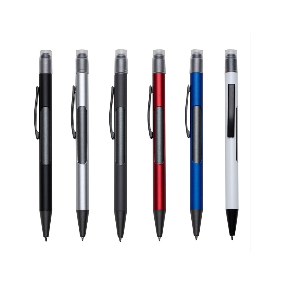 Caneta metal touch com led. Caneta com pintura fosca colorida, possui clip metálico e detalhes em cinza. Borracha touch superior com tampa plástica transparente, ao pressionar o touch irá ligar/desligar o led. No centro da caneta há uma área retangular cinza, quando efetuado a gravação no local, ao ligar o led a personalização ficará iluminada. Acompanha 3 baterias LR41 localizadas no compartimento interno do touch, para substituição das baterias basta desrosquear o compartimento para efetuar a troca. Esferográfica aciona por giro. OBS.: PEDIDOS APENAS MÚLTIPLOS DE 50 PEÇAS!