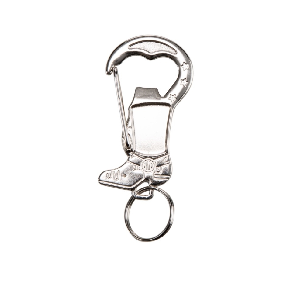 Chaveiro abridor de garrafas formato bota country. Possui detalhes em relevo, frente e verso iguais