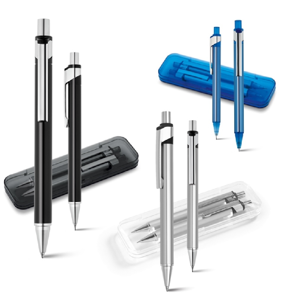 Conjunto de caneta e lapiseira. Alumínio. Caneta 1,5km de escrita. Lapiseira grafite 0.7. Incluso estojo.ø11 x 137 mm | Estojo: 165 x 50 x 24 mm