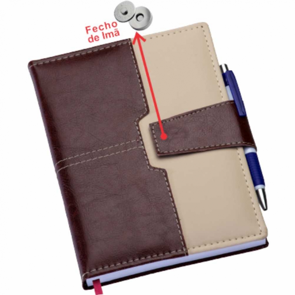 Agenda Executiva MARROM c/ Fecho de Imã + Suporte p/ Caneta - Capa: Couro Sintético 0,6mm - Miolo de Agenda Diária - 2x2 Cores - 344 páginas - Off-set 63g com Mapa 4x4 Cores - Índice Telefônico - Planejamento - Formato 145x200mm. NÃO ACOMPANHA A CANETA!