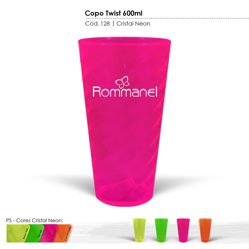 Copo personalizado Twist Cristal de 600ml de capacidade, produzido com alta qualidade, matéria prima com alto brilho, parede de alta resistência e alta transparência