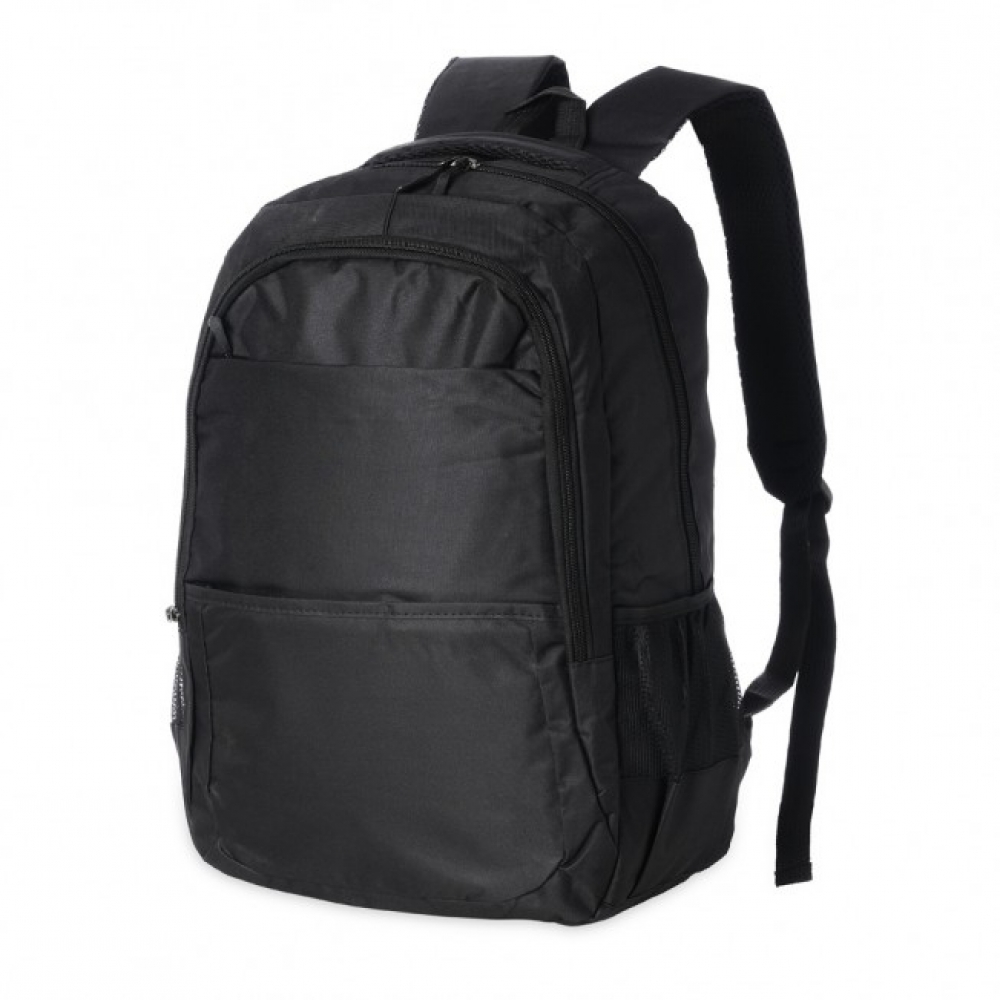Mochila de nylon 27 litros com quatro compartimentos, sendo o principal com bolso para notebook 17,3. Com bolsos laterais telados, a mochila possui duas alças de mãos e alças para as costas com revestimento espumado.