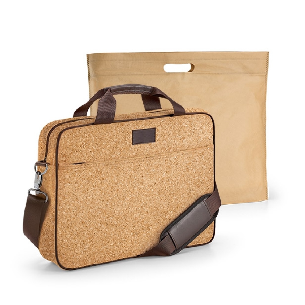 Pasta para notebook. Cortiça. Compartimento para notebook 15.6. Interior forrado e almofadado. Fornecida em embalagem de non-woven.400 x 290 x 70 mm | Embalagem: 490 x 378 mm