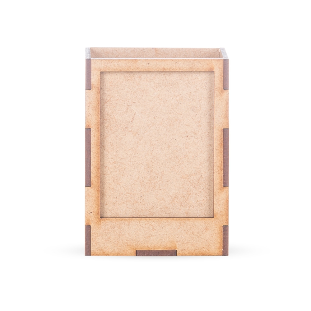 Porta caneta com porta-retrato. Material inteiro de MDF, possui suporte para foto que é encaixada pela área superior. Tamanho da fotografia é de 9,5 cm x 6,5 cm.